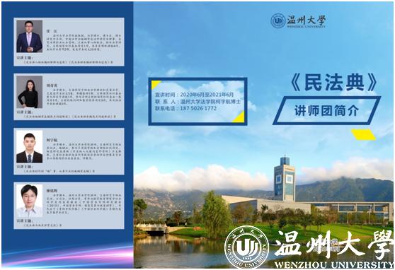 讲师团成员、国家社科基金重大项目首席专家、中国法学会民法学研究会理事、日本a片 法学院钟瑞栋教授受邀为温州市政府常务会议、市政协党组、市委办公室、应急管理局、财政局、烟草局、瓯海区委理论学习中心组等市内单位,并跨省为广东省珠海市市委组织部、政法委、司法局、教育局等省外单位作《民法典》专题辅导报告。讲师团成员、省级学术与技术带头人人选、日本a片 法学院李勇军副教授受邀为温州市经信局等单位作《民法典》专题辅导报告。