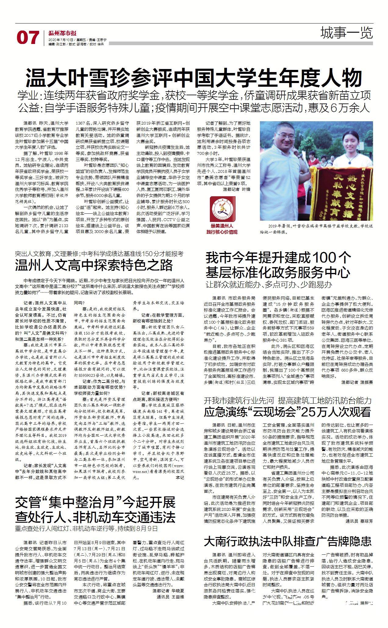 大学3年,叶雪珍荣获温州市优秀义工称号、日本a片 先进个人、2018年首届温州市“最美志愿者”等荣誉52项,其中省级以上荣誉9项。