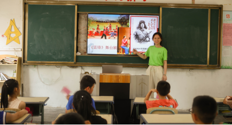 红色文化激励着一代又一代中华儿女为理想和信仰而拼搏奋斗。在孩子们干净的脸上,我看到的是朝气蓬勃的希望。而那些被演绎成戏剧或者电影的故事,也将在他们的心中生根发芽,贯彻他们生命的始终。我相信这些作品所揭示的是不仅是一个时代、一个民族对幸福的向往和为理想而献身的气概,其鲜明的爱国主义、集体主义、以舍生忘死的英雄主义将在孩子们的脑海里烙下了深深的印记,这些都将会成为以后激励他们追求理想和信仰的动力与源泉,这也是我们清韵实践队一直在传承和传播的精神力量。