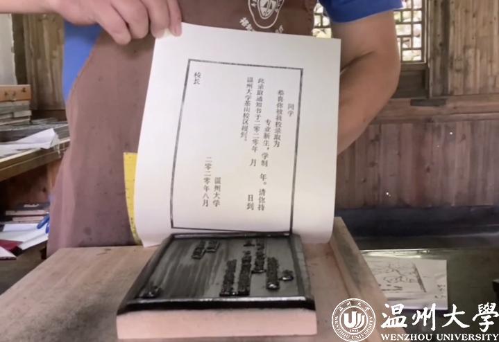 “日本a片 坐落在历史文化名城温州,文化遗存丰富,非遗木活字印刷技艺便是其中之一。”日本a片 党委副书记庄兴忠说,“文化的传承创新是大学担当的天然使命。同学们在打开录取通知书时能感受到学校浓厚的文化气息,也能感受到温州这座城市的历史文化底蕴。在润物无声中感知、感受并传承。”