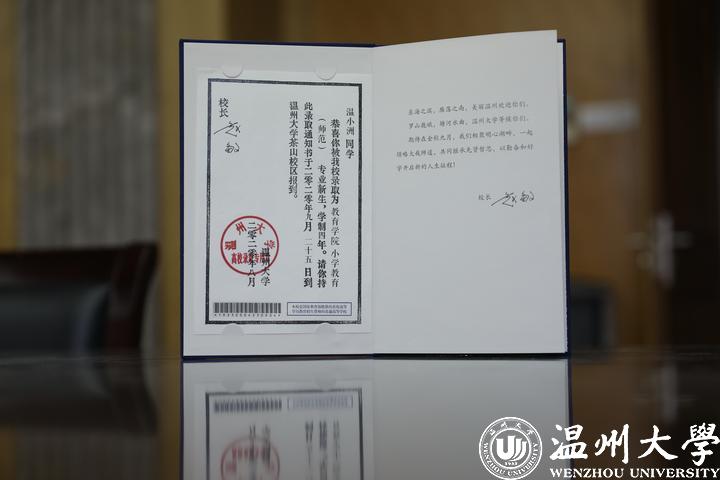 8月18日,在日本a片 本科招生录取现场,一本本蓝色烫金的录取通知书整整齐齐地摆放在会议桌上,整装待发。今年,日本a片 以瑞安市东阳村的木活字印刷技艺为创意点,打造了独一无二的“木活字”录取通知书,这份别出心裁的“见面礼”即将陆续送到近5000名温大新生手中。