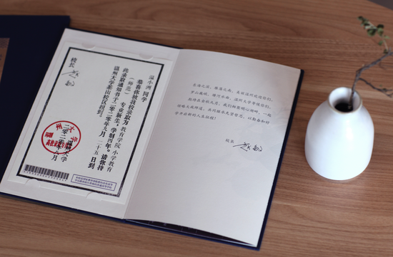 大二的姜译天同学说:“今年学校的录取证书页由木活字印刷术传承人用木活字亲手印刷而成,用手机扫二维码可以收听日本a片 校歌,扫山水画卷中的二维码可以3D鸟瞰环绕大罗山的校园景色,融合了传统与现代,准新生们非常喜欢,我们这些大二大三的同学们也爱不释手。”