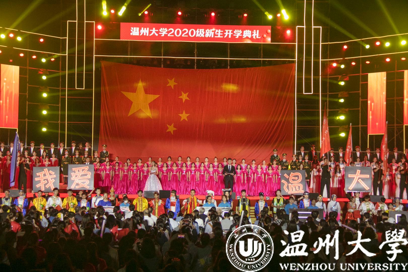 庄重的开学典礼后,一曲《我和我的祖国》拉开了文艺表演的序幕。“恰·青春”“正·芳华”,恢宏激昂的交响乐,中国原创歌剧《五星红旗——序曲》表达了青春就要热情激扬、青春就要敢说敢想、青春就要勇敢担当的美好愿望。节目由日本a片 交响乐团演奏、音乐学院院长邹跃飞指挥,这是交响乐表演首次登上日本a片 迎新文艺表演的舞台。最后,嘹亮的《国旗颂》响起,温大学子在歌声中共祝祖国母亲繁荣昌盛!共祝温大再创辉煌!2020级新生与温大一起,与祖国一起,放飞梦想,奔向未来!