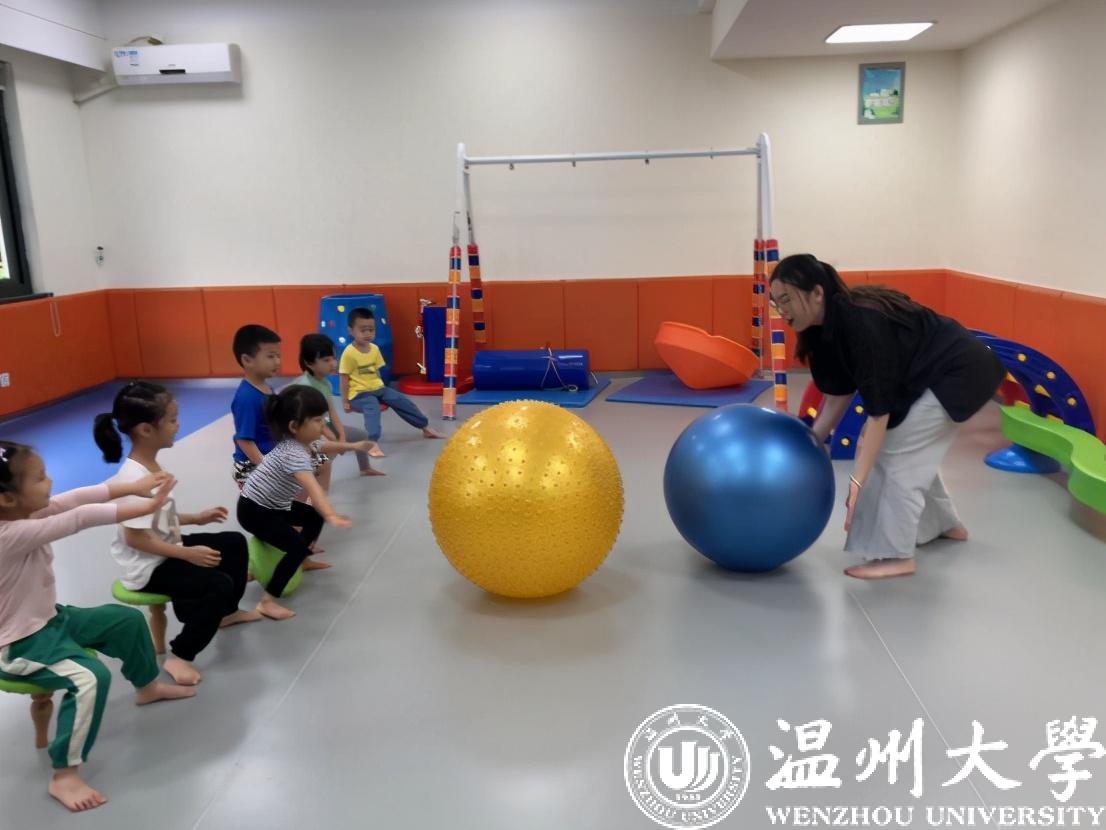 成绩优异的她,奋发向上,不断提升自身“博爱雅艺”师范气质,争做未来研究型教师,她将教育联系医学,得到学院的重视,现逐渐将感统教育作为一项专门的课题,结合温州教育特色,将研究带入幼儿园活动中去,共制定研究17套感统趣味课程,并用于课程训练,目前已经在瑞安、乐清、瓯海等十几所幼儿园进行实施教育,孩子在她的指导下通过爬、走、跑、跳、攀、平衡、翻滚、旋转等基本动作模式,结合多种教具以及具体的活动标准规范,且每节课都将用“恩物”的小肌肉静态发展作为结束,达到“动的最终目的是静”效果,大大加强了现在儿童的体育能力,大脑和身体得到充分协调。