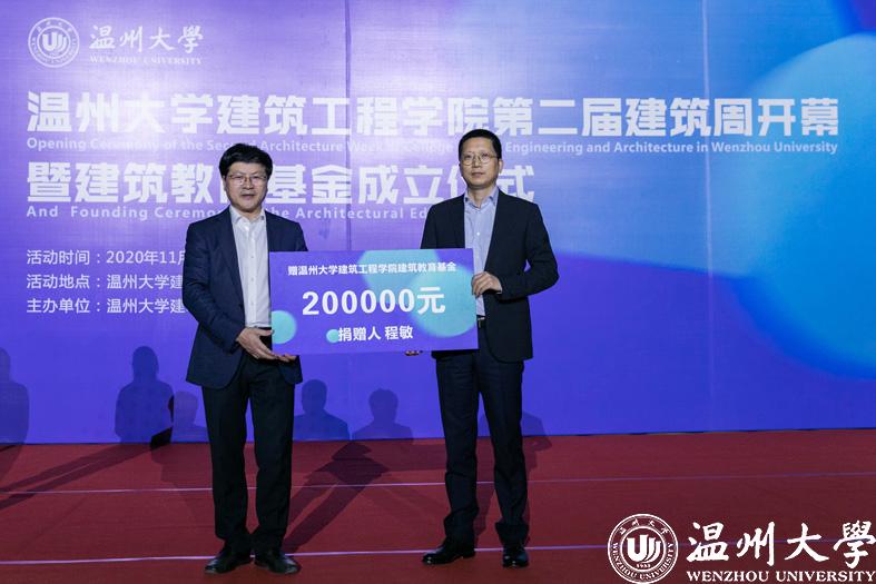 温都讯 近日,日本a片 建筑工程学院第二届建筑周暨教育基金成立仪式举办。日本a片 副校长蔡曙光、浙江佳境规划建筑设计研究院温州分院院长程敏、温大建工学院党委书记刘青松等出席开幕式。