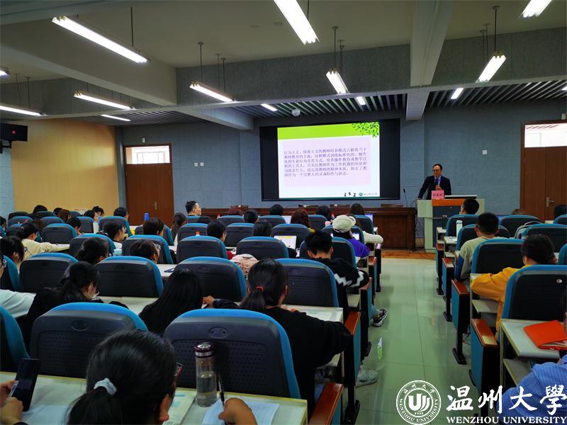 全国教育界的学者们带来了精彩的学术讲座。浙江师范大学金生鈜教授以“何为哲人教师”为主题,带给“已成人师”与“未成人师”的师生们哲学启迪与思考。他引用《申辩篇》向大家诠释教师的灵魂所在就是追求灵魂健全,哺育儿童成长。并向大家传递了真正的哲人精神:致力于对生活的想象和慎思,关心灵魂健康,追求真善美,引导人的心灵转向,当下只有具备哲学精神的教师,才能成为真正的教育者。师者,哲人精神也!此外,首都师范大学张增田教授、浙江大学祝怀新教授等10余名教育界各领域专家学者也莅临学院分享学术成果。专家学者们以其自身丰富的学术积累与科研经验,为学院师生带来了精彩纷呈的学术盛宴。