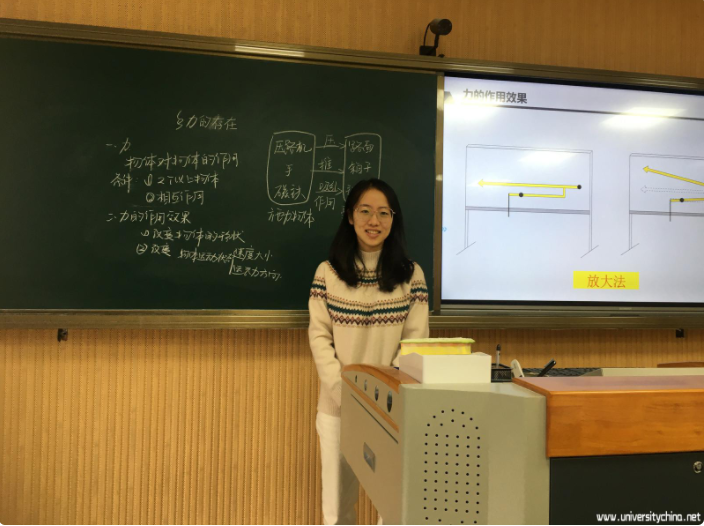 在初赛备赛期间,毛婷微同学同时在初中进行实习,这给比赛的准备带来了一定的挑战,只能在周末进行备课磨课。在12月1日得到入围决赛的消息之后,仅有12天的时间准备比赛,比赛内容包括即兴演讲、模拟上课和现场答辩三个部分。作为一名非校队选手,毛婷微同学面临着同场竞争选手实力强劲和本专业首次参与该赛无经验可参考等困难。“但好在暑假期间有参与过校赛的训练,当时黄晓虹老师每周都会有针对性地进行训练,这样密集的训练大概维持了两个月,为这次的比赛打下了坚实的基础。校赛以高中物理课程为竞赛内容,但此次比赛的内容为初中科学课程的教学。所以,在黄晓虹老师的带领下,我利用这十天的时间精细地阅读初中课程标准,掌握核心理念,进行演讲训练,还与老师一起反复磨课,寻找课堂漏洞。”