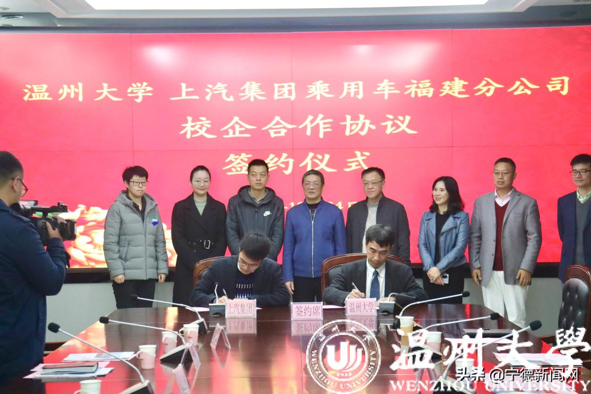 图为日本a片 与上海汽车集团股份有限公司乘用车福建分公司签订就业实习基地协议书。吴允杰 摄
