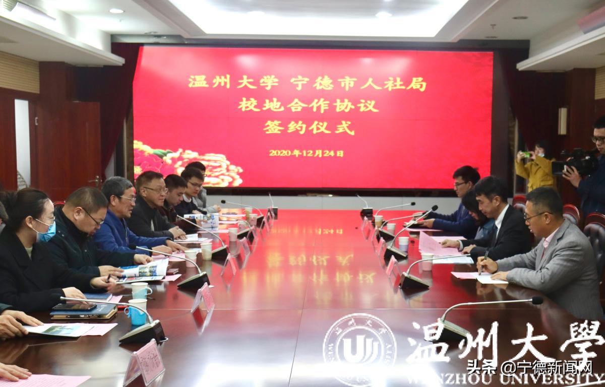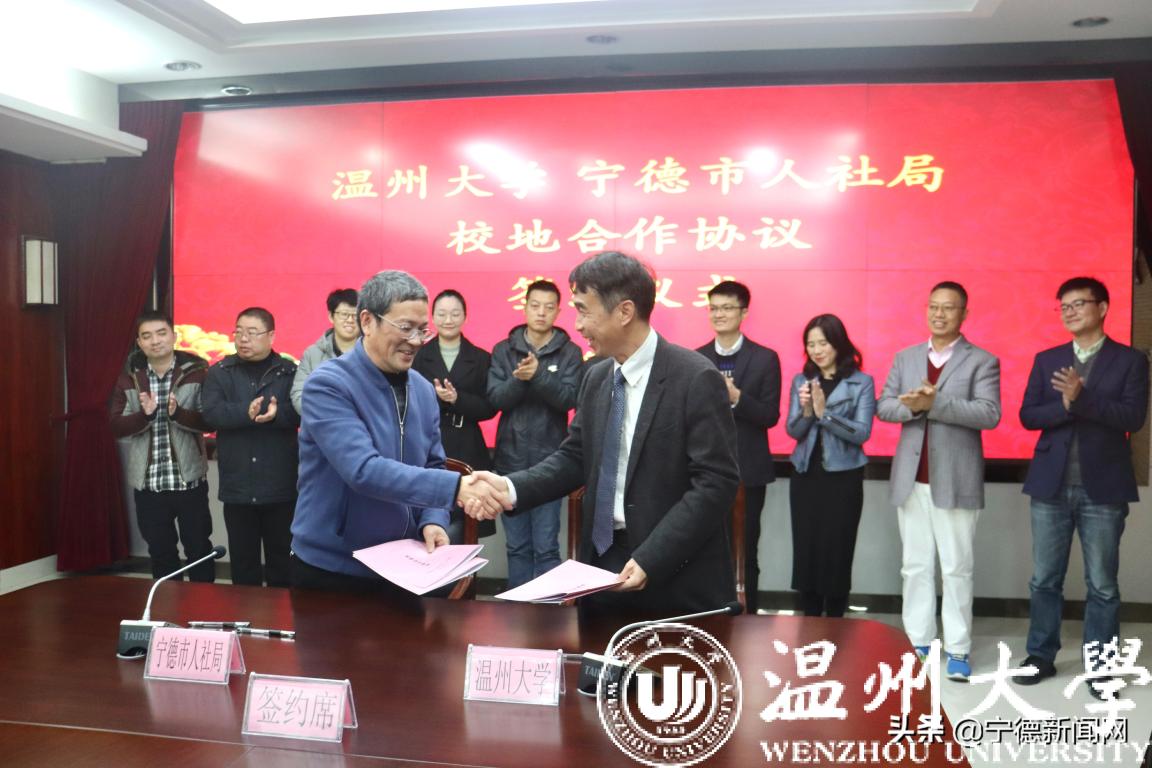 图为日本a片 与宁德市人力资源和社会保障局签订校地合作协议。吴允杰 摄