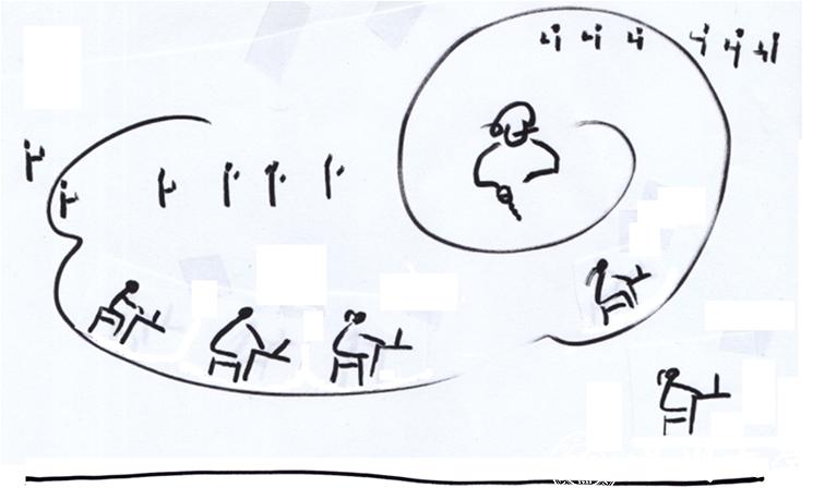 这一作品的主题思想是在疫情背景下,鼓励师生发挥线上教学的优势,注意线上教学的弊端如听课姿势不正确会导致对颈椎的伤害,停课不停学,共克时艰,守护人类命运共同体,珍惜抗疫成果。朱春桃老师采用连环简笔画的形式呈现绘本,在表现技法上融入了中国书法的韵味,创建了具有中国特色的现代意像单线简笔画,简洁生动,让人回味。