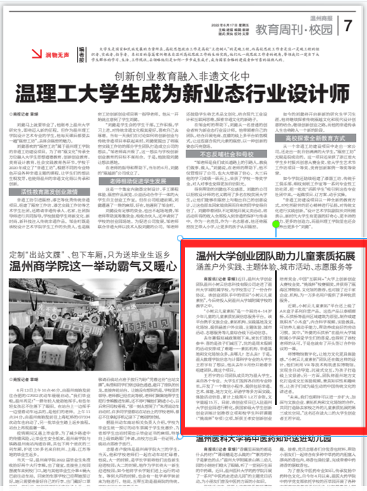 去年暑假双减政策刚下来,家长们喜忧参半:喜的是孩子们减压了,忧的是周末假期的活动安排成了难题——素拓机构、非遗基地和文化场馆众多,去哪儿?怎么去?于是,温大数理学院信息与计算科学专业的大学生王若宇有了想法,他从去年9月份开始着手组建团队,做这个项目。