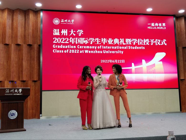 最后,温州市五洲文艺志愿者艺术团团长曾春玲带领部分团员为全体国际学生带来了《这世界那么多人》等歌曲,在歌声中,国际毕业生正式告别镌刻着他们青春足迹的温大校园,迈向更大、更高、更远的人生舞台,为构建人类命运共同体奉献青春力量。