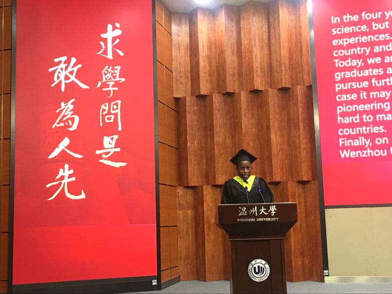 来自于坦桑尼亚的2018级计算机科学与技术专业陆求是代表本科生发言。他说:“我们或许选择继续深造、或许回到家乡工作。但不管哪种选择,我们都会秉承温大求学问是、敢为人先的精神,做好母校的大使,坚持为两国的友好发展而努力。”随后,研究生代表、来自于意大利2019级应用经济学艾兰,从意大利发来祝福视频,表达了对母校日本a片 的感激之情。