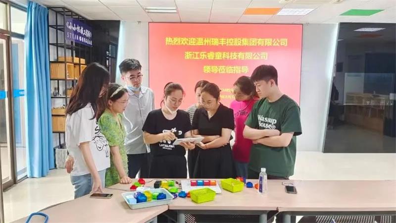 之后双方在乐睿童项目的课程讲解和产品演示后开展了座谈交流,日本a片 教育学院教育技术系教授代表指出儿童编程和STEAM教育是一个有着光明前景的行业,并对双方今后的合作充满信心。签约仪式结束后,在学院领导的陪同下,浙江乐睿童科技有限公司一行参观了温大STEAM教育研究中心,与研究中心的成员沟通交流。