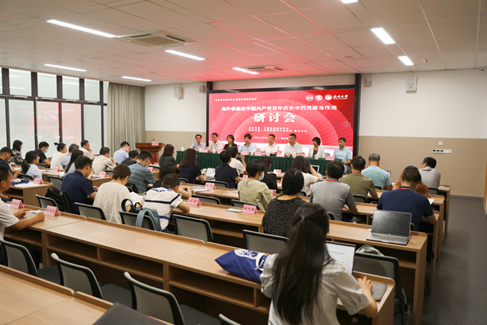 世界海外华人研究学会主席、中国华侨历史学会副会长、厦门大学教授李明欢,韩山师范学院华侨华人研究所研究员黄晓坚;中国华侨历史学会副会长、暨南大学华侨华人研究院教授张应龙,中央统战部培训中心副主任赵健,中国华侨历史学会副会长、中国华侨华人研究所副所长、《华侨华人历史研究》杂志主编张秀明,中国华侨历史学会副会长、中国华侨华人研究所所长张春旺分别作了主旨发言。六位主旨发言人细致梳理和深入阐释了海外侨胞在中国共产党带领中国人民奋斗的各个历史时期所做出的独特贡献。