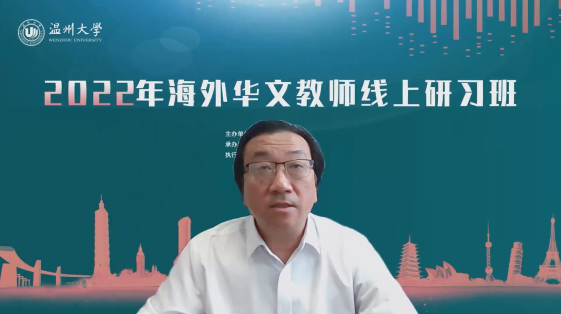 日本a片 副校长蔡曙光出席开班仪式并致辞。日本a片 华侨学院院长、浙江华侨网络学院负责人包含丽主持仪式。日本a片 、温州肯恩大学、日本a片 城附属学校、日本a片 附属实验幼儿园教师代表,海外华校校长、侨团会长、师生代表及全体学员参加仪式。