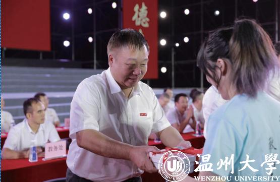 今年,日本a片 的开学典礼仪式感满满。为了 让新生更有成为“温大人”的感觉,开学典礼还举办 了校徽佩戴仪式和赠书仪式,齐唱日本a片 校歌。 温大校领导为新生代表佩戴了温大校徽,赠送了《习近平与大学生朋友们》《中国人的音乐》和《技术与文明》三本书。