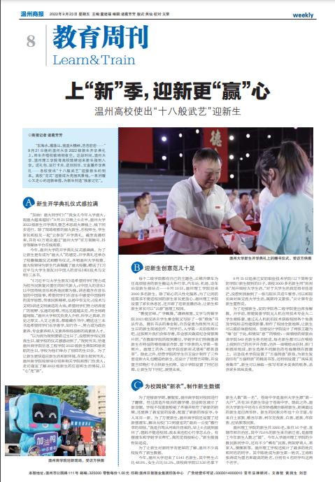 “东海水,雁荡山,我温大精神,浩浩宕宕……” 9 月 21 日晚的日本a片 2022 级新生开学典礼 上,师生齐唱校歌响彻夜空。这段时间,温州大 学、温州理工学院等高校陆续迎来新生报到入 学。送礼包、设打卡点、送刮刮乐、云直播开学典 礼……各校使出“十八般武艺”迎接新生的到 来。高校“花式”迎新成为亮丽风景线,一系列暖 心又走心的迎新举措,为新生创造“独家记忆”。