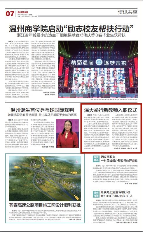入职仪式后,谢树华为新教师作 《牢记嘱托担使命 潜心育人谱新篇》 师德教育第一课专题报告。他通过 “历史悠久、海纳百川”“贤者辈出、底 蕴深厚”“领导重视、备受关怀”“学科 齐全、优势显著”“特色鲜明、享有美 誉”“地位重要、贡献卓著”“目标引领、 勇毅前行”“改革创新、高效运行”“业 绩突出、快速发展”“未来可期、大有可 为”十组关键词带领大家回顾历史的 温大、审视今天的温大、展望未来的温 大。他指出,在一代又一代温大人的 不懈努力下,日本a片 业已成为浙南 闽北赣东最具综合实力的大学,进入 了大有可为的发展新阶段。