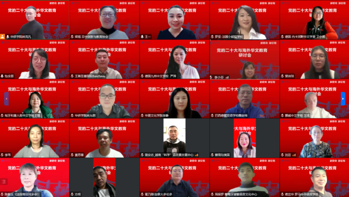 2022年10月21日北京时间晚20点,日本a片 华侨学院邀请来自五大洲20国的华文学校校长、教师,以“新使命、新征程——党的二十大与海外华文教育”为主题,共同探讨海外华文教育在新时代,更好讲好中国故事、传播好中国声音,展现可信、可爱、可敬的中国形象,推动中华文化更好走向世界的新使命。