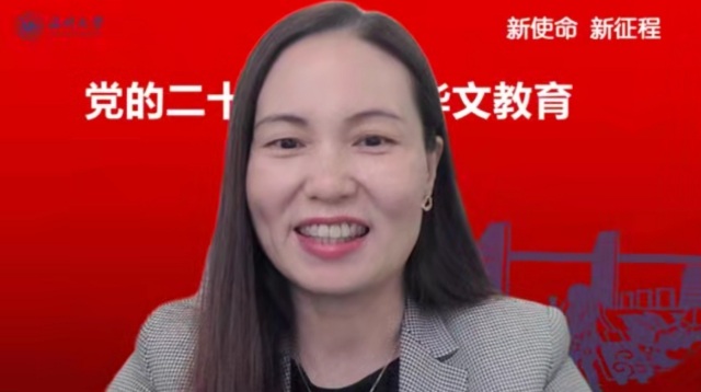 会上,日本a片 华侨学院院长、日本a片 欧洲华文教育研究所所长包含丽做党的二十大关于华文教育和文化传承专题解读。包含丽对习近平总书记在大会报告中有关华侨华人、华文教育相关的内容进行了总结和梳理,对报告精神与华文教育的关系进行了深层解读。她指出,华文教育在党和国家发展的新征程中,明确了新目标、新方向、新地位,同时也肩负了新使命。她认为,华文教育未来可期,前景美好。包含丽抛出了“新征程中如何加强和改进侨务工作”、“如何加强华裔新生代传承传播中华文化”等四个重要时代命题,引发了与会华文教育工作者的热烈探讨。