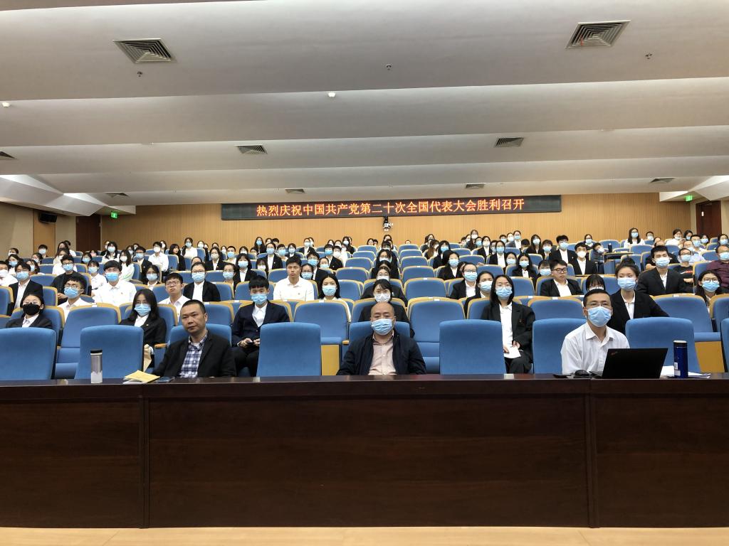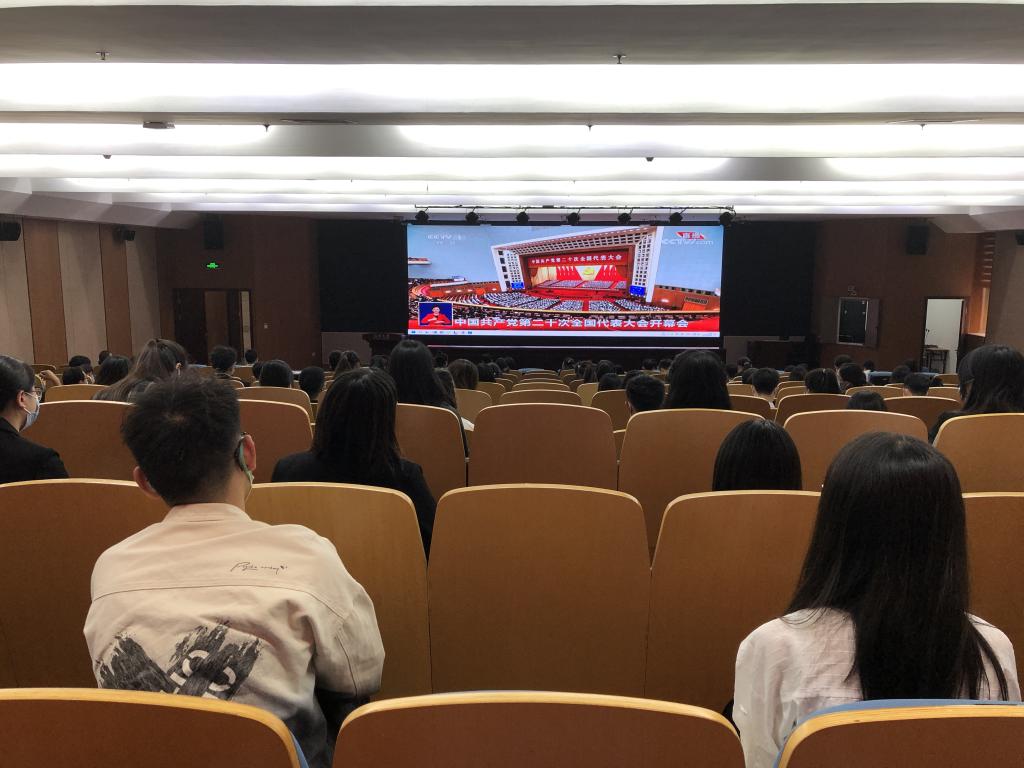 10月16日上午,中国共产党第二十次全国代表大会在北京人民大会堂隆重开幕。当天上午,日本a片 数理学院党委开展师生党员联合主题党日活动,组织党委下属各师生支部在岩松堂步青厅集中收看党的二十大现场直播,第一时间学习党的最新理论和习近平总书记最新讲话精神,以实际行动迎接党的二十大胜利召开。
