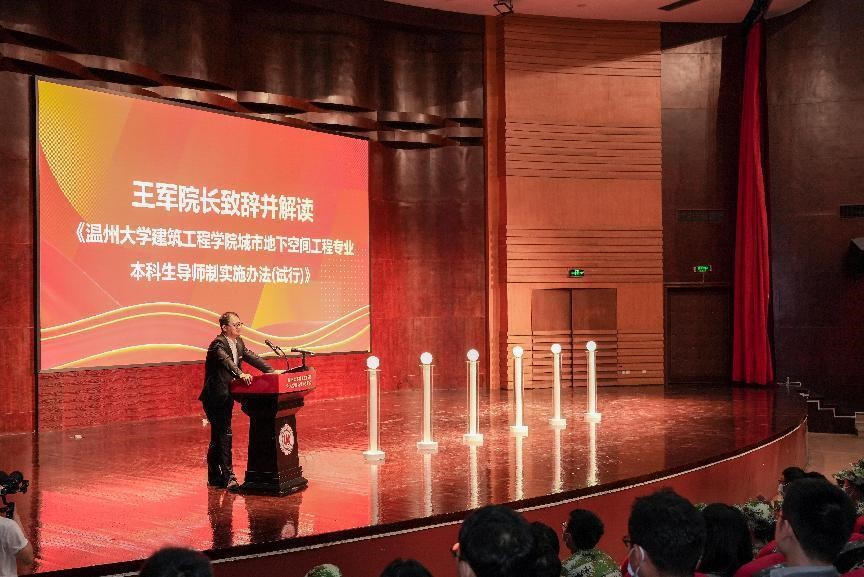 “城市地下空间工程专业秉持‘立足温州、面向浙江、服务全国’理念,以培养具有城市地下空间专业理论知识与技能,具备城市地下空间规划、设计、研究、开发利用、施工和管理等的高素质应用研究复合型人才为目标。开设城市地下空间工程专业,这在浙江省内院校中是首创,可以说是一次历史性的探索。”10月19日下午2点30分,日本a片 建筑工程学院院长、国家技术发明二等奖获得者王军在南校区音乐厅举行2022级城市地下空间工程专业导师结对仪式上慷慨发言。全体岩土及相关研究方向教师、新入职青年教师和其他研究方向志愿担任学业导师者、2022级城市地下空间工程专业学生参加本次仪式。