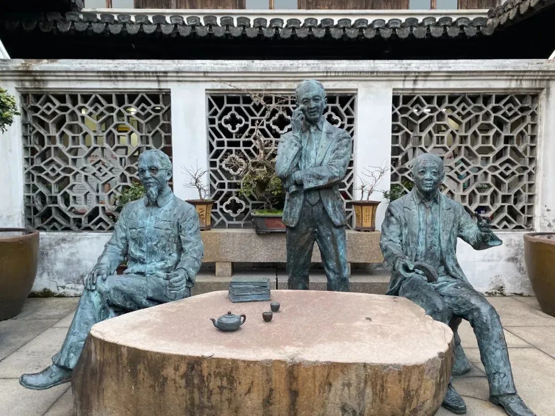 温州数学名人馆内姜立夫(左)、苏步青(右)、谷超豪(中)三位数学家塑像