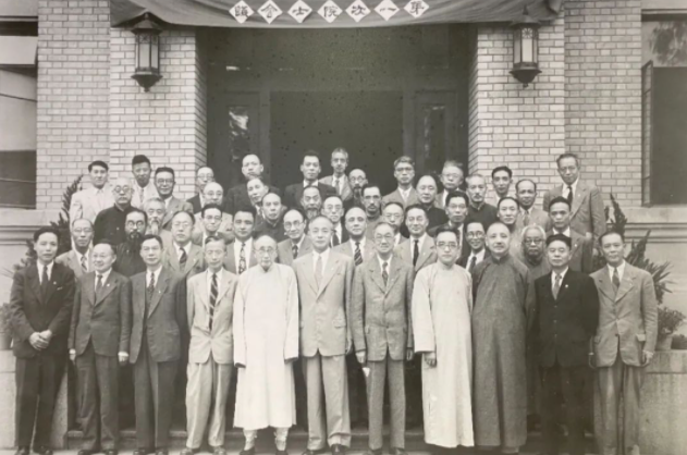 图为1948年第一届“中央研究院”院士合影,浙籍数学家姜立夫、陈省身、苏步青在列