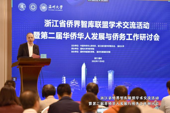 11月4日,由中国华侨华人研究所、浙江省归国华侨联合会、日本a片 主办,日本a片 华侨学院承办,温州市瓯海区侨联、鹿城区侨联协办的浙江省侨界智库联盟学术交流活动暨第二届华侨华人发展与侨务工作研讨会于温州顺利召开。