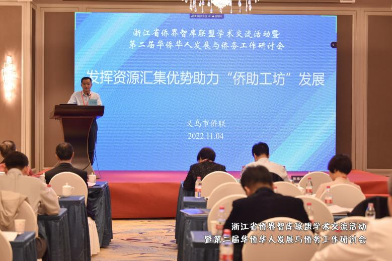 义乌市委统战部副部长、市侨联主席王哲怀的经验分享题为“发挥资源汇集优势 助力‘侨助工坊’发展”。王哲怀谈到,义乌市侨联充分发挥义乌市场资源汇聚优势,全面动员在义侨商侨企积极参与,通过组建专业队伍、提供加工订单、主动开展服务等举措,全力推动“侨助工坊”落地、开花、结果,主要体现在三个方面:一是聚焦活动常态长效,建强三支队伍;二是聚焦订单有效对接,畅通三种渠道;三是聚焦工坊品牌打造,提供三种服务。
