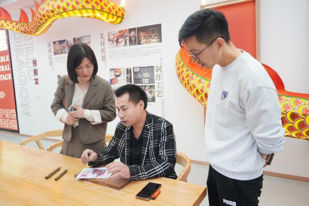 在瓯智侨青少年海外传播中心,考察组一行观看了现场麦饼制作、非遗馆格橱龙制作等特色研学活动,听取了负责人陆焕斌关于该中心承办“亲情中华”海外华裔青少年网上夏令营及当前的运行管理机制、教学模式、特色课程等情况的介绍。