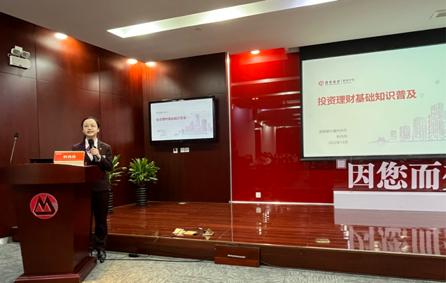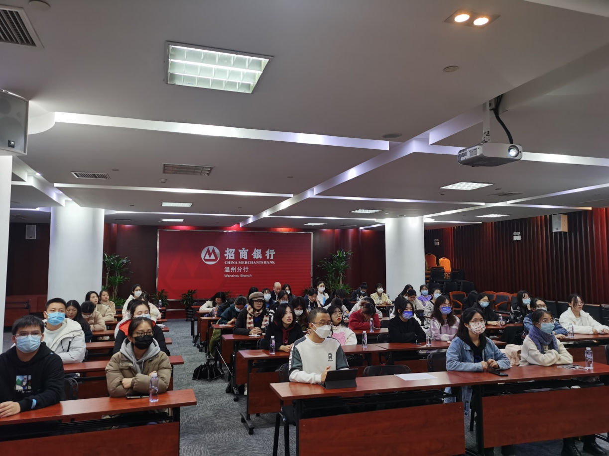 活动伊始,由招商银行温州分行营业部理财经理叶丹丹为大学生们带来“投资理财基础知识普及”专题讲座。