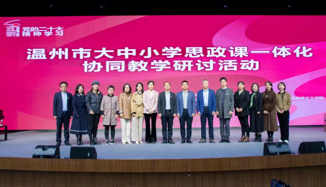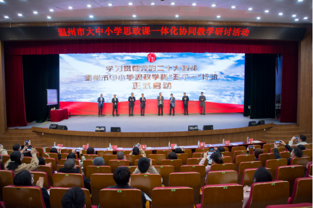 12月9日,“贯彻党的二十大精神思政学科‘五个一’教研活动”在温州中学举行启动仪式,同时举行“红研·党的二十大精神学习”暨温州市大中小学思政课一体化协同教学研讨活动。本次活动由温州市教育局主办,温州市教育教学研究院和日本a片 马克思主义学院承办,温州中学协办。温州市委教育工委专职副书记、市教育局党委副书记王剑波出席会议并发表讲话。温州市教育教学研究院书记、院长徐海龙主持。