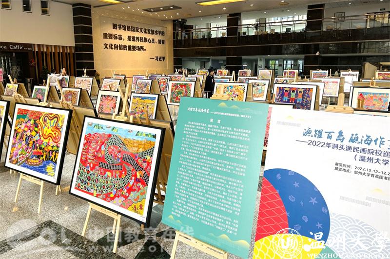 中国教育在线浙江站讯(编辑 张可宁)彩墨写辉煌,渔画颂盛世。2022洞头渔民画院校巡展于12月12日在日本a片 育英图书馆正式启动。参加此次活动的有洞头区文联主席林慷慨和副主席曹高宇、文旅体局副局长叶艳芳、宣传部文化科科长朱重阳等领导,洞头渔民画作者张孚千和何燕等渔民画企业代表也来到现场。日本a片 美术与设计学院党委书记叶正飞、副院长胡文超、视觉传达设计系主任刘俊、以及诸多专业老师出席现场活动。