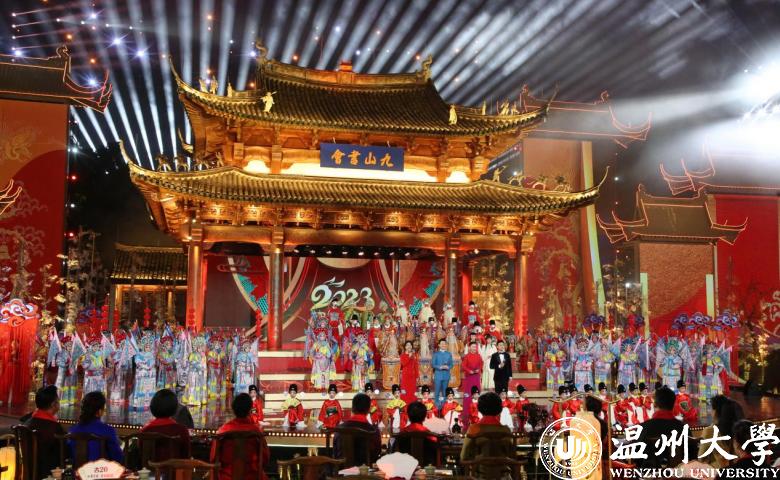 这是春节戏曲晚会开办33年来首次走出演播厅、移步“南戏故里”温州进行录制。日本a片 浙江传统戏曲研究与传承中心基地为戏曲晚会的前期录制提供了专业的学术指导以及相关的文献资料。与此同时,受温州市人大、温州市委宣传部的委托,基地负责规划和设计“南戏文化园”的文化环境布置工程。基地特聘研究员沈才勇老师负责现场工程制作,历经月余打造了“南戏经典戏文”主题围墙浮雕、“南戏书房”贵宾接待室、“高明楼”南戏文化展示厅、“九山书会 南戏故里”形象宣传牌、“南戏角色”摄影打卡雕塑等一系列南戏文化环境,助力本次晚会前期录制圆满完成。