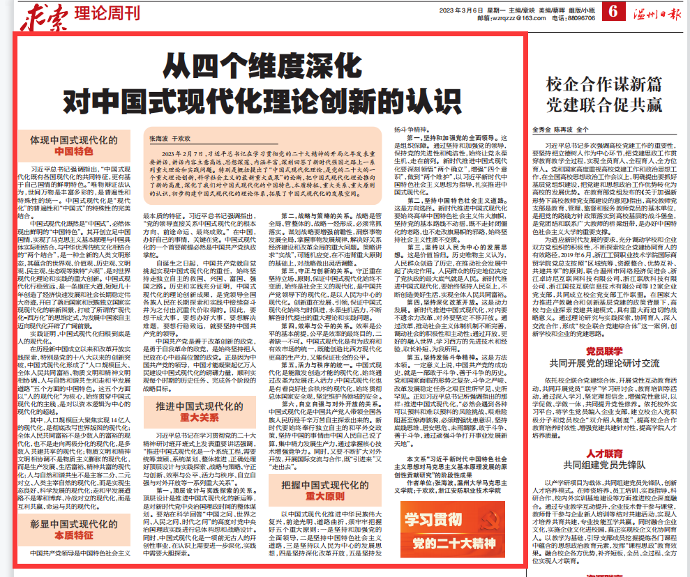 2023年2月7日,习近平总书记在学习贯彻党的二十大精神的开局之年发表重要讲话,讲话内容立意高远、思想深邃、内涵丰富,深刻回答了新时代强国之路上一系列重大理论和实践问题。特别是概括提出了“中国式现代化理论,是党的二十大的一个重大理论创新,科学社会主义的最新重大成果”的论断,把中国式现代化理论推向了新的高度,深化了我们对中国式现代化的中国特色、本质特征、重大关系、重大原则的认识,初步构建中国式现代化的理论体系,拓展了中国式现代化的发展空间。