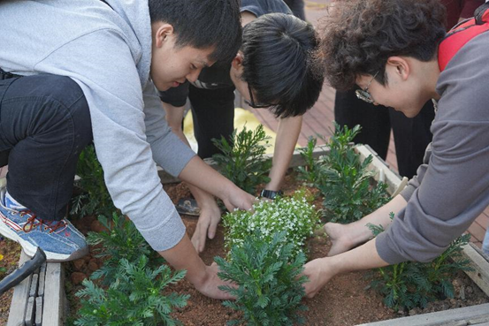本次活动采取“承包责任制”,在现场各班级认领责任田,学校专业老师对学生进行现场指导,教会同学们辨别不同植物和种植技巧。随着一苗苗小树苗栽入土壤里,一桶桶水灌溉在植物根部,象征希望和青春的幼苗开始在这个温暖的春天里生根发芽。