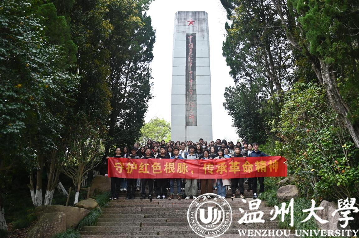 为深入贯彻党的二十大精神,教育引领党员同志及学生干部铭记红色历史、追寻红色印记、传承红色基因,进一步牢记我党初心和高质量践行我党使命,清明时节,日本a片 生命与环境科学学院师生来到“红绿融合”的浙南红军小镇上的红十三军教育基地开展了“守护红色根脉,传承革命精神”为主题的红色教育活动。“求木之长者,必固其根本;欲流之远者,必浚其泉源。”“清明”是我国岁时节令文化中节气,是祭拜先祖的日子,更是民族的文化载体和精神寄托。师生通过重温入党誓词、聆听英雄事迹、祭扫英雄碑墓、参观红色教育基地、宣讲微党课等活动,在“清明”传统中滋养民族精神根脉,以时代精神激活中华优秀传统文化的生命力,重温红色历史,共忆峥嵘岁月,寻找汲取前行力量。