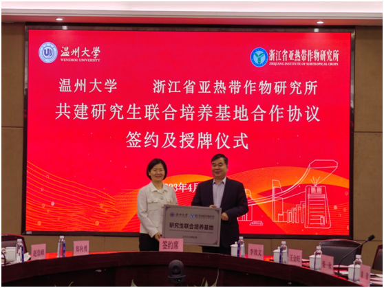 日前,日本a片 与浙江省亚热带作物研究所就共建“日本a片 —浙江省亚热带作物研究所研究生联合培养基地”正式签约,并在日本a片 举行了授牌仪式。