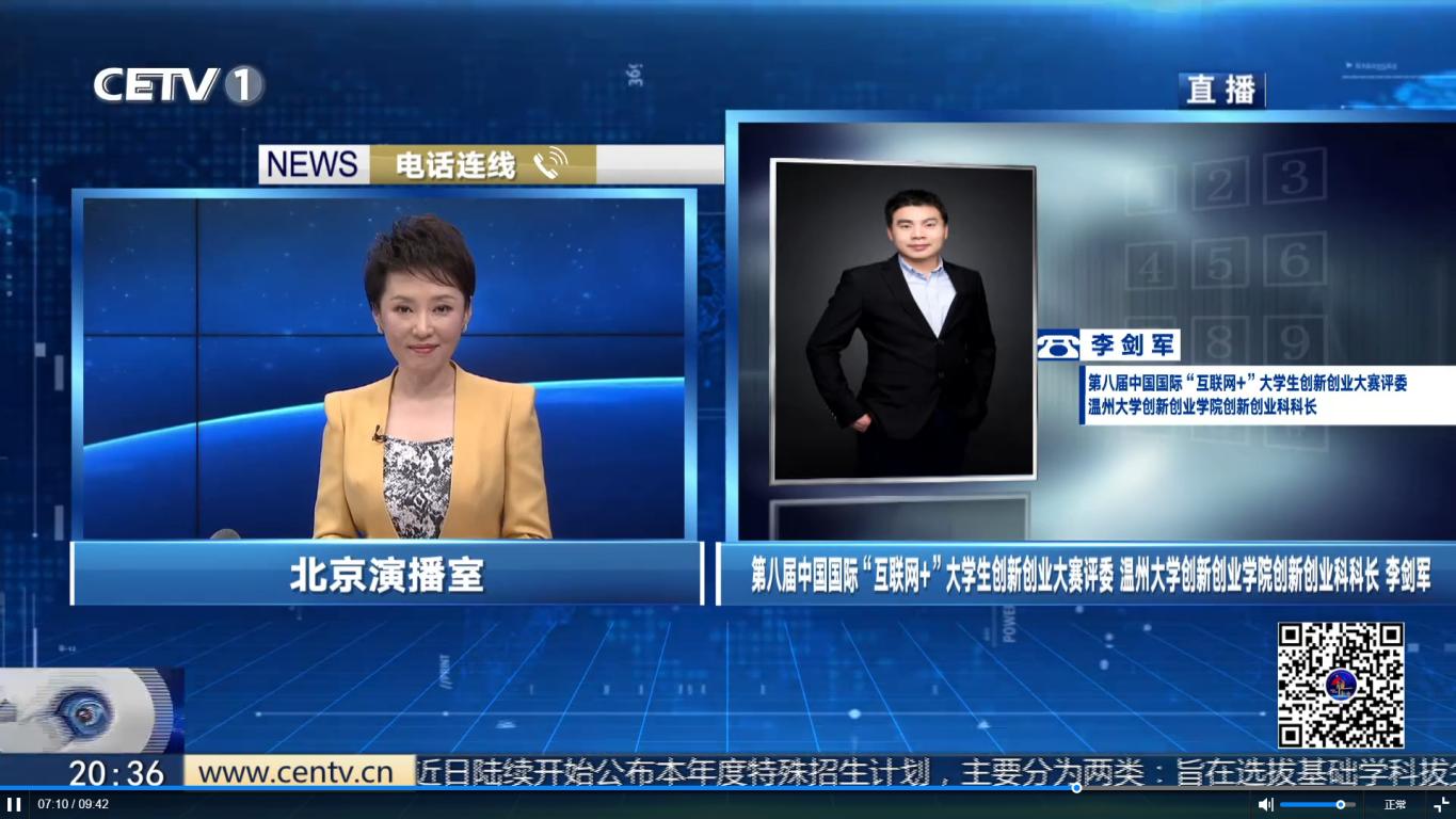 2023年4月10日,日本a片 李剑军老师受邀电话连线中国教育电视台1频道《e视界》栏目,对刚刚落幕的第八届中国国际“互联网+”大学生创新创业大赛进行专业解读。