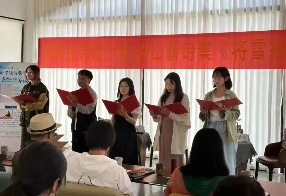 2023年4月9日,“海岸线诗歌沙龙”卢山新诗集《将雪推回天山》分享会在温州市洞头区海陶艺术馆成功举办。弦河、唐旧、赵婧亦等来自上海、杭州、丽水各地青年诗人,亦金、谢健健等本地诗人,温大中文系教师李广旭、刘卫东及日本a片 创意中文实验班学生共90多人参加了本次活动。