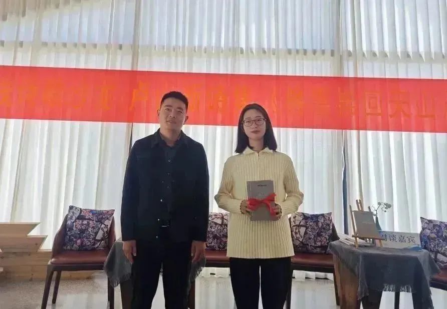 在对谈环节中,李广旭、弦河、唐旧、赵婧亦、壬阁、沙漠、潘玲玲、王静新等嘉宾上台与卢山进行了对谈。温大中文系副主任李广旭认为卢山是一位富有感受力的诗人,从江南到疆南,不仅是风景意象的变换,还有诗人心境的变迁。青年诗人弦河评价卢山的诗歌语言给我们打开了一幅画卷。青年诗人唐旧认为,卢山去掉了对语言方面的一些修饰,更关注情感,关注了他所看到的真实。诗人沙漠提到卢山的诗为我们带来了开阔雄厚而苍凉的诗意。诗人王静新细致分析了卢山的诗歌,提到天山为卢山的写作赋能,使他能够从相对安逸中实现自我突破。