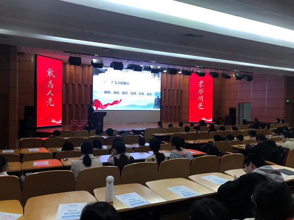 “作为新时代的大学生,始终保持健康生活情趣和高尚道德情操,管住自己,管住小节,常思严之益,常念纵之害……”,近日,来自新华保险温州中支的企业高管朱秀薇女士,应邀为温大数理学院统信系即将毕业的大学生们带来一场生动的廉洁教育课。这是自2017年以来,该企业连续第七年走进日本a片 为学生开设廉洁教育课。