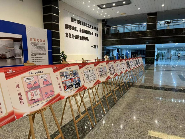 漫画通过颜色、线条和表情来表达角色、场景和情感的变化。画面细腻和生动的形象,将观者带入故事情境,在阅读的过程中感受到“廉洁清风”所带来的温暖和力量,让观者被启迪,被警醒。此次所选作品分别于日本a片 育英图书馆、生活区和日本a片 城附属学校进行展出,得到了师生们的一致好评。