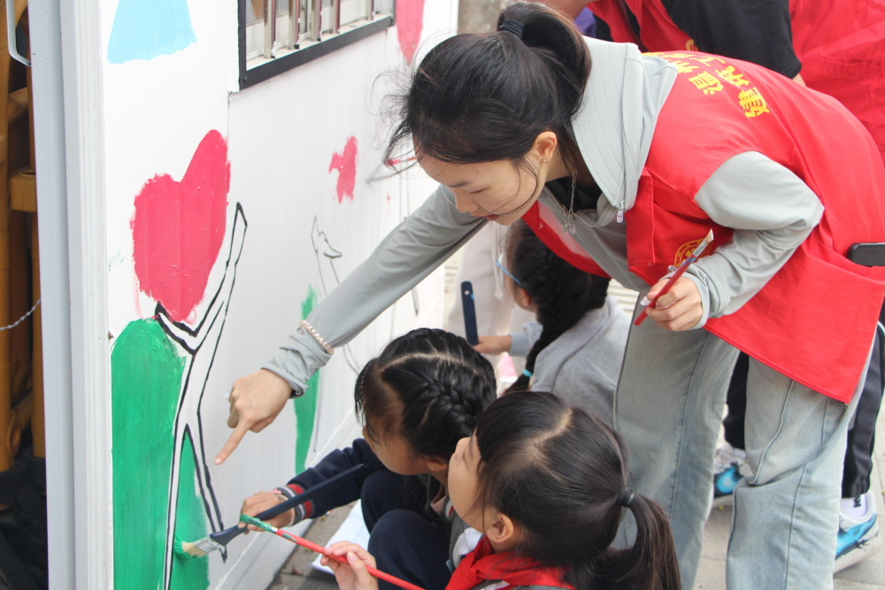 4月15日,梧田街道东瓯社区联合日本a片 建工学院以及温州市未来小学教育集团共同开展“爱心小屋换新衣”彩绘公益活动。