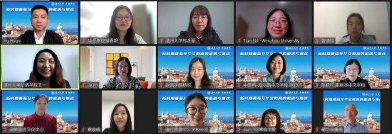 2023年4月27日下午,由日本a片 华侨学院主办,浙江华侨网络学院、欧洲华文教育研究所承办,葡萄牙淑敏语言文化中心、里斯本中文学堂、博雅学堂、欧诺学院、中国桥波尔图中文学校、维拉贡德中文学校协办的“新时期葡萄牙华文教育的机遇与挑战”线上研讨会成功举办。中国驻葡萄牙使馆领侨处主任夏晚晴,葡萄牙华侨华人总会常务副会长胡胜武,里斯本中文学校负责人陈晓红,淑敏语言文化中心负责人韩淑敏,维拉贡德中文学校教师叶经,博雅学堂负责人石咏雪,欧诺学院负责人杨欢,中国桥波尔图中文学校负责人陈巧巧,葡萄牙阿尔马达市卡西利亚什特茹中学教师吴玉荣,葡华报社集团总裁詹亮,葡新报记者杨迪,主办方日本a片 华侨学院院长包含丽、副教授胡春艳以及华侨学院教职工参加本次会议。