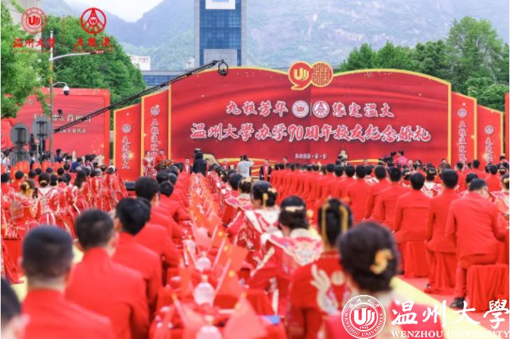 本次“九秩芳华 缘定温大”日本a片 办学90周年校友纪念婚礼由日本a片 、宜宾五粮液股份有限公司主办,杭州市西湖情玫瑰婚典组委会、杭州青年文化承办。