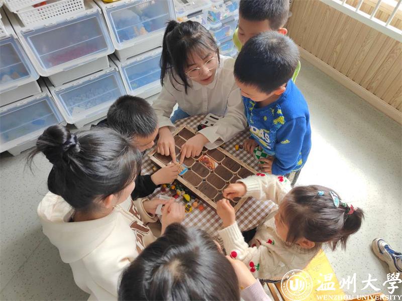 食物对对碰教玩具有三种不同的玩法,第一种玩法是将不用类型的食物轻黏土模型粘贴在相应颜色木块上,以初步了解每类食物在餐盘中的比例。第二种玩法是食物华容道,即当碰到相同类型食物,就可将其取出。第三种玩法是食物消消乐,即将不同类型食物卡片粘贴在木块背面,当幼儿翻开两块相同类型食物木块时,就将其拿走。最后谁拿到的卡片最多,谁就是赢家。
