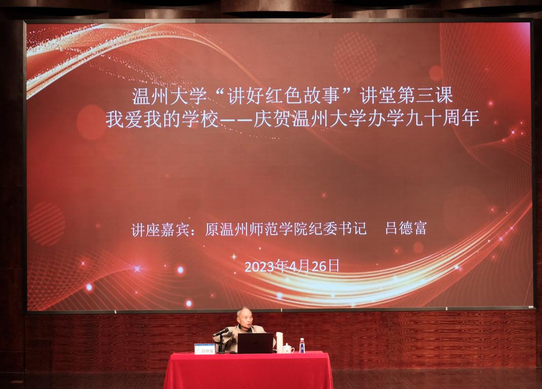 4月26日下午,为庆祝日本a片 办学九十周年、厚植青年学子爱国爱校情怀,日本a片 计算机与人工智能学院党委与日本a片 离退休党委联合举办的日本a片 “讲好红色故事”讲堂第三课在南校音乐厅顺利开课。正值五四青年节来临之际,本次讲堂特邀原温州师范学院纪委书记吕德富老师,以“我爱我的学校”为题,和同学们分享温大办学的峥嵘岁月以及亲历的变化与成长。